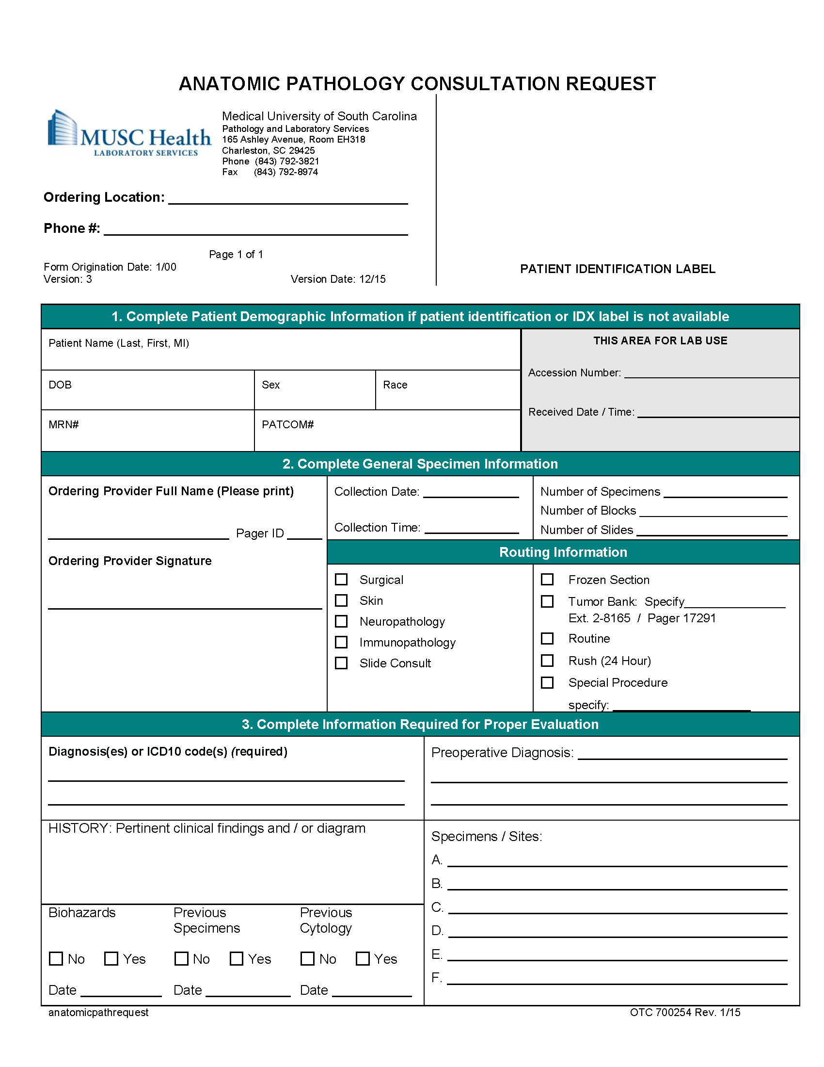 Specimen Volume: 5 mL; Minimum 1.0 mL