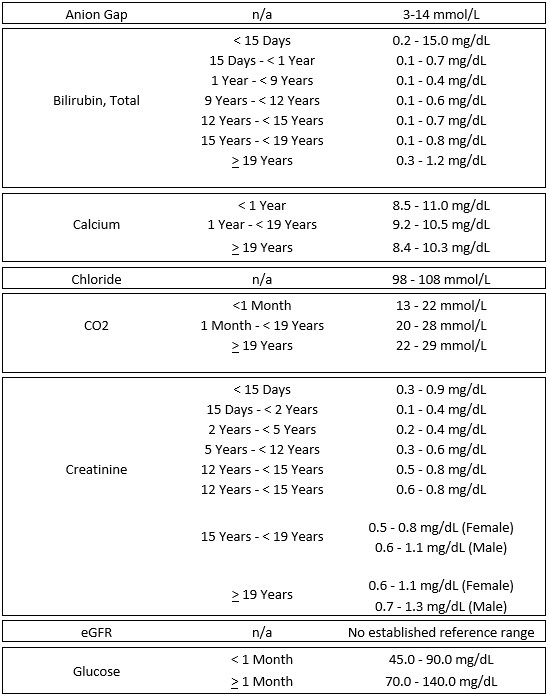Test Code LAB17 Comprehensive Metabolic Panel